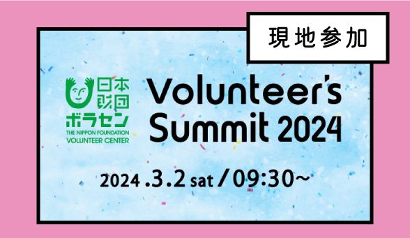 3/2(土) に行われる「Volunteer's Summit 2024」の様子を一部録画配信します! Volunteer's Summitは、日本財団ボラセンが主催する、日本に新しいボランティアカルチャーをつくり、その輪を広げていくためのカンファレンス&アワードセレモニーです。 普段、様々な場所でボランティア活動に携わる仲間たちが集まり、その経験や価値を分かち合い、また、年間を通じて活躍した個人や団体を讃え、ボランティアの可能性を広く社会へ発信していくことを目的として開催します。 また、元日に発生した能登半島地震で被災された皆様には心よりお見舞い申し上げます。今回のVolunteer's Summitでは「災害ボランティアなどの被災地支援」についても考える機会となれば幸いです。 現地にお越しになるのが難しい方、当日ご都合がつかない方など、ぜひお申し込みください!